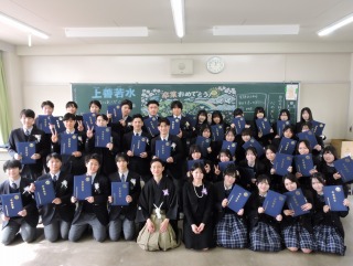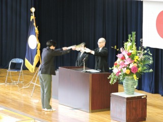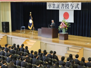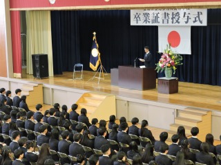 担任が卒業生一人一人を呼名し、卒業生代表に卒業証書が授与されました。また、翔洋賞の授与も行われました。