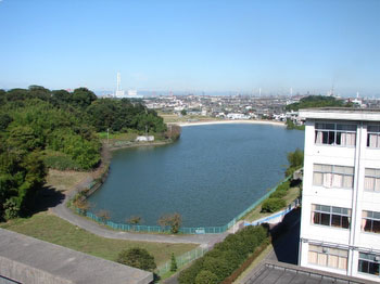 校舎からのぞむ黒廻間池