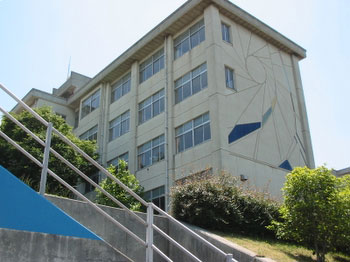 裏門からのぞむ校舎